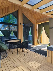 Деревянный дом у озера с сауной и бильярдом